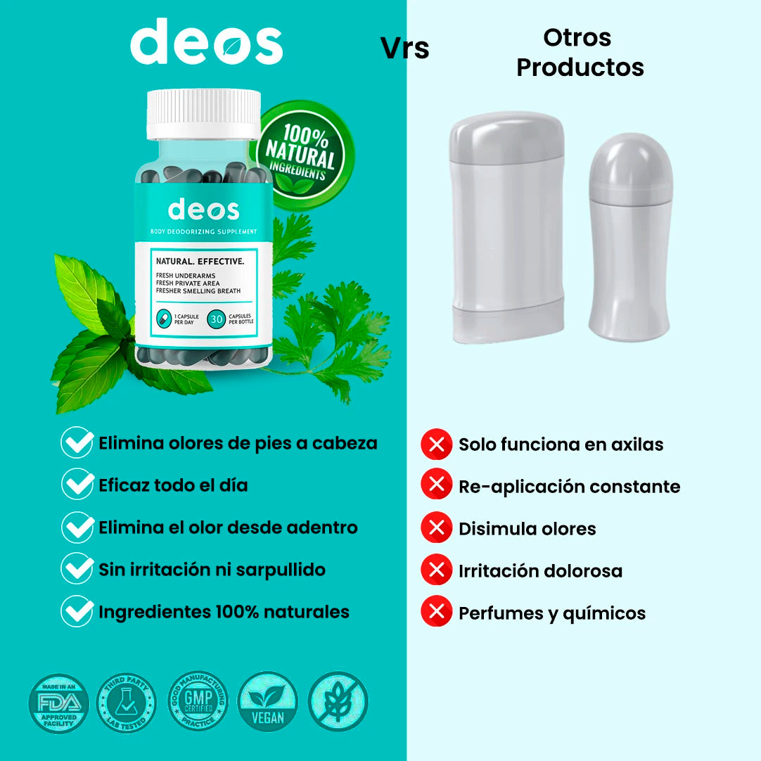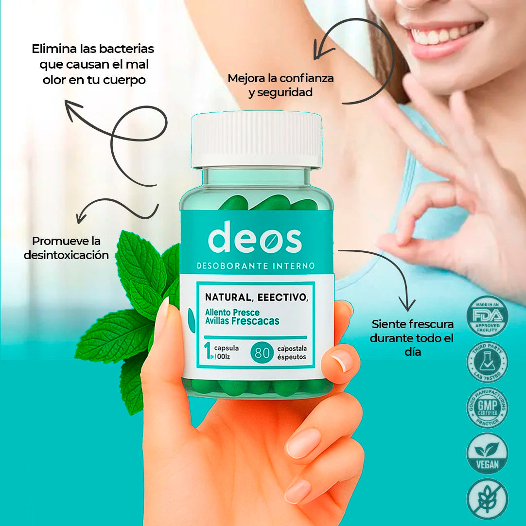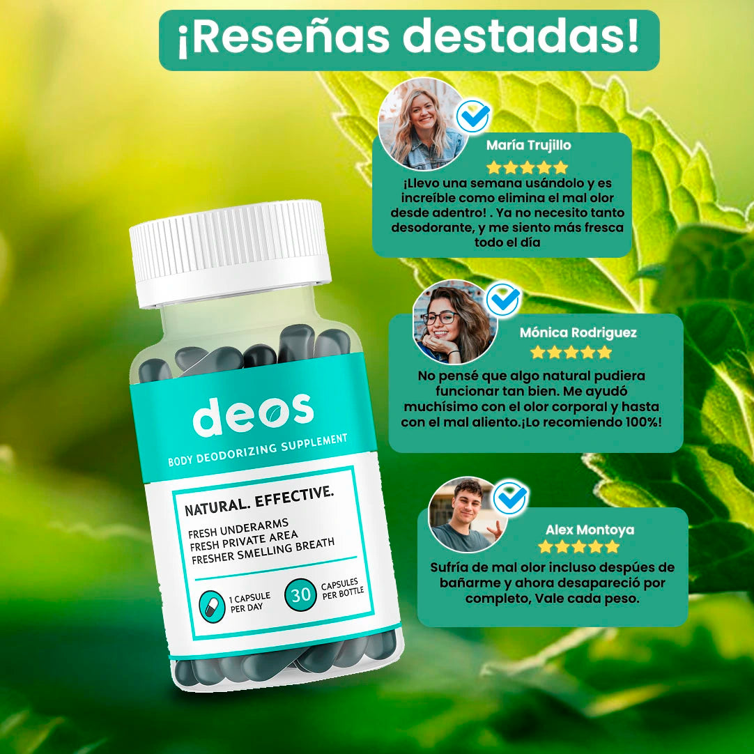Despídete del mal olor corporal con Deos, el suplemento 100% natural que actúa desde el interior. Sin químicos, sin irritaciones… solo frescura de pies a cabeza 🌿